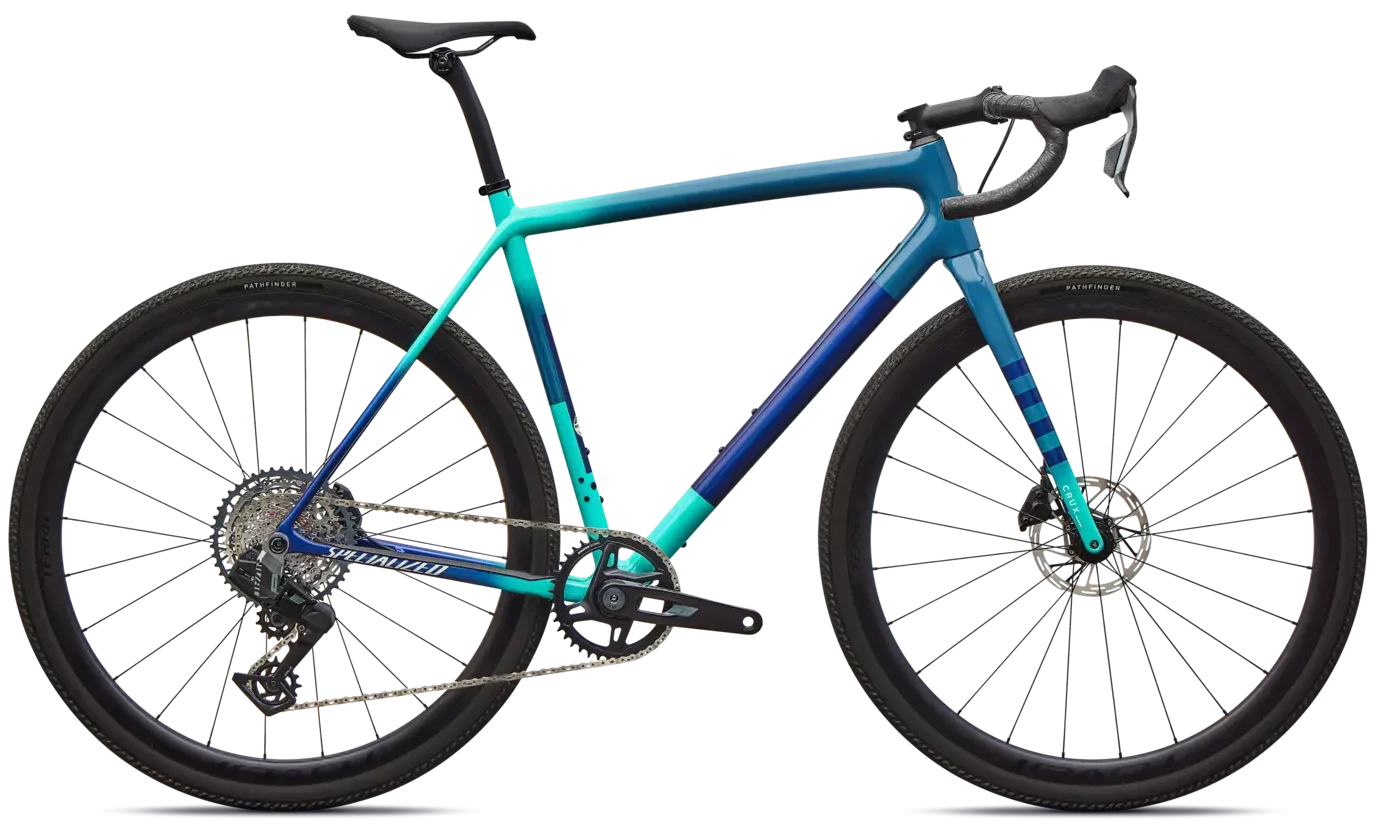 The Crux is the lightest gravel bike in the world, with the exceptional capability of massive tire clearance and performance gravel geometry. This Crux Expert comes spec'd with all-new SRAM Rival XPLR AXS for effortless braking, lighter weight, with massive 13 speed gear range, lightweight and durable Roval Terra C Disc wheels, and 2Bliss Ready, 700x40mm Pathfinder Pro tires that hookup over nasty terrain. We took the revolutionary breakthroughs that made Aethos the lightest bike ever and applied them to the Crux. The result? A gravel bike that climbs like a dream, floats over nightmarish terrain, and weighs less than a full bottle in your cage. Capable: 47c/650b x 2.1” tire clearance. More clearance means more capability. With Diverge-level tire clearance, Crux takes you anywhere you can imagine, at full gas. Nimble, supple, and reactive. Responsive at the pedals. Supple in the saddle. With performance gravel geometry and race-influenced fit inspired by Crux’s iconic history in ‘cross.