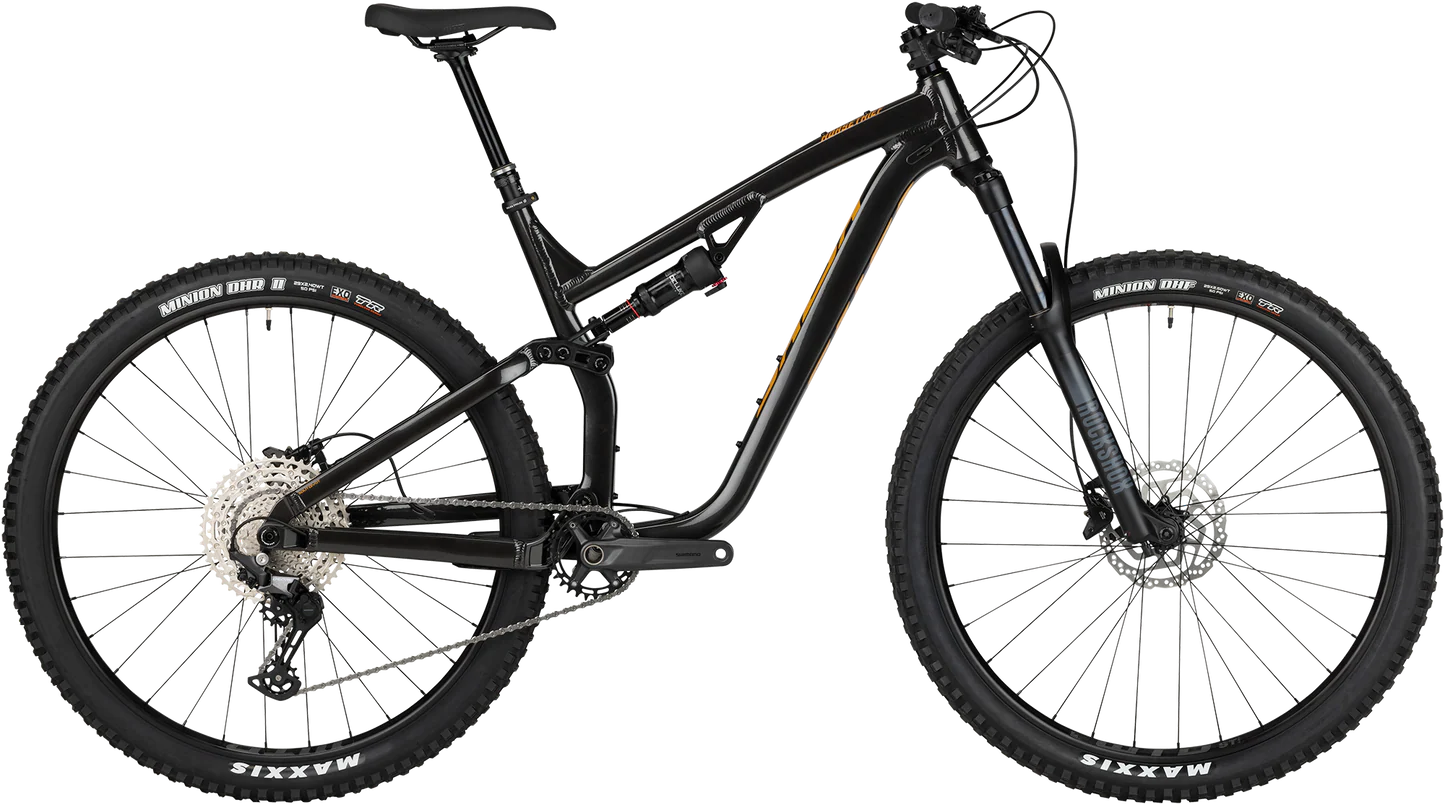 Looking for the best full-suspension trail bike for those long days on bucket-list trails? How about fast and fun weekend rides on your local trail network? Horsethief Deore can do both. The frame fits two full-size water bottles in the triangle and features top tube mounts for ride essentials — enjoy riding fully equipped without the weight and bulk of a backpack. Horsethief’s aluminum frame uses a Split Pivot suspension design and trail geometry for solid uphill performance and a reassuring feel on daunting descents. 120 mm rear and 140 mm front suspension travel keep you in control over trail obstacles, and the 29" wheels hold their momentum to keep you rolling. Shimano’s Deore 1 x 12 drivetrain is built on decades of refinement in a reliable package that you can trust to take you anywhere.